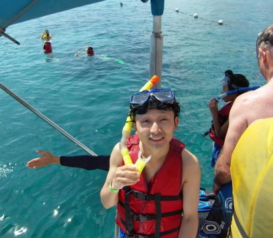 到了八丹拜潜店以后,坐船去上面任何一个潜点只要5分钟到10分钟船程,7月-10月期间水相对冷一些,最冷的时候大概23度,但也不是整次潜水都23度,所以3毫米全身的湿离是ok的。一天可以选择3个日潜和一个夜潜。