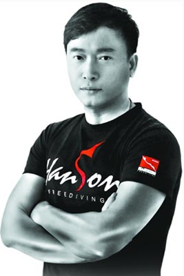 自由潜水在国外已经发展了20多年,却在近几年才引进国内。“我也一直在思考自己的瓶颈,同样是人,为什么我就不能突破30米深?”直到2008年,国际潜水组织SSI协会进入中国,开始在国内推广自由潜水,亚洲区的负责人找到任汉森,但由于负责人年龄不小了,体型普通,任汉森曾一度觉得不信服。“但两年后,我看到SSI培训出来的学员居然可以在水下憋气七八分钟,平均也可以达到四分钟,且不分男女老少,对比自己练的,当时最久也就是三分钟,这个结果使我对自由潜水的理念有所改变,它是一项运动,需要讲究训练技巧。”任汉森说。
