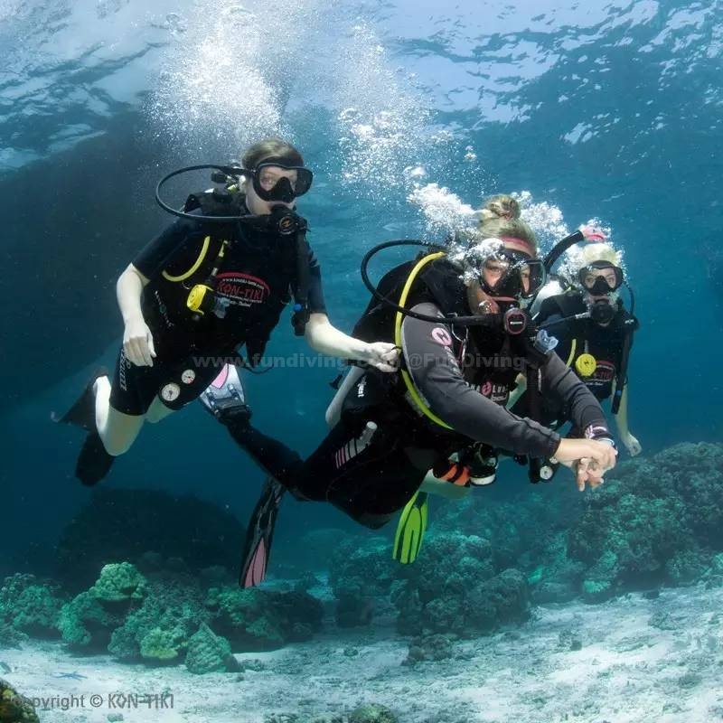 其实没有潜水证也可以潜水,但必须在教练的陪同下,最深不超过12米。这种方式叫体验潜水。