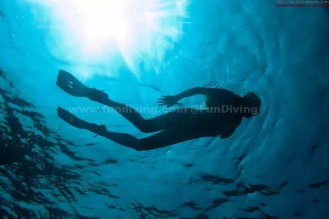 在水下不要任意的增加你宝贵的速度,记得一个简单的物理法则:在水下速度增加2倍,需要耗费等同水面4倍的功!若潜水速度增加为三倍,则需耗掉等同水面九倍的做功!所以在水下增加速度是一项极为困难且不具经济效益的事情。把话反过来说,你若是前进速度降为一半,那所需的能量(耗氧)只需原来的1/4。看过人家打太极拳吗?下次下水后,刻意的将一切动作放慢,这需要练习,当你身体习惯于这种韵律与节奏之后,成果将会反映呈现在你的耗气量上面。