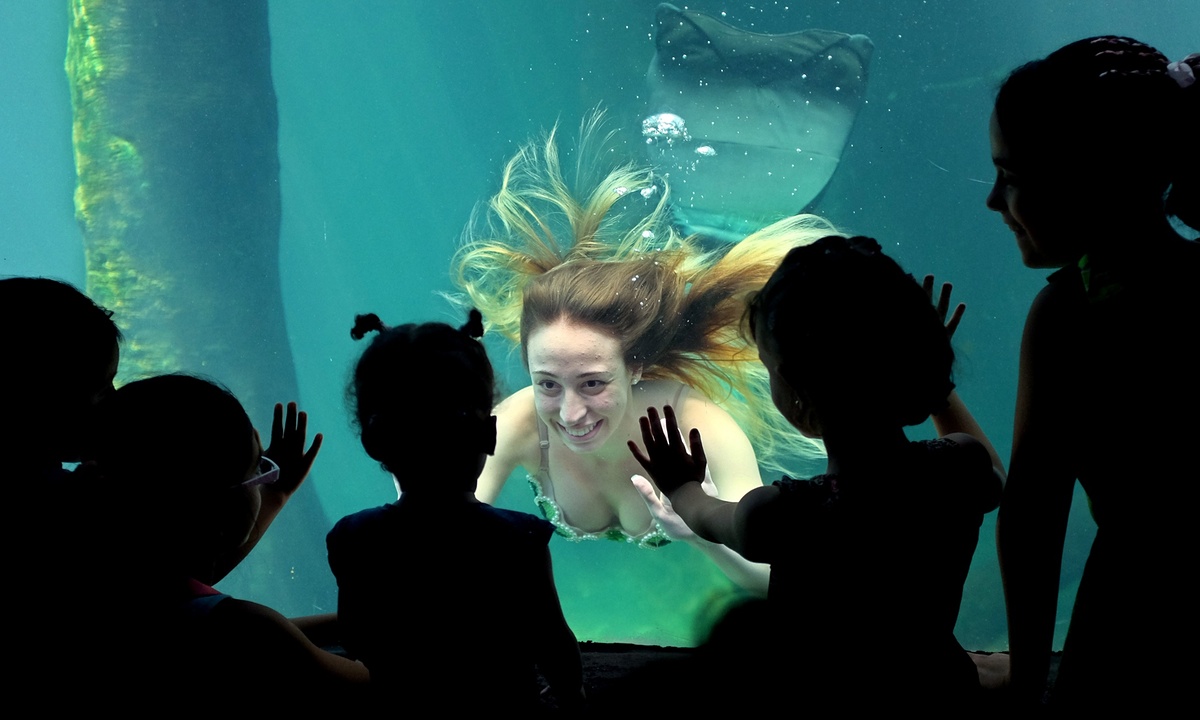 不仅如此,这些职业美人鱼工作者,她们美美的尾巴其实重达35磅(约31斤),但是水缸里的盐水可以帮助她们浮着不至于沉下去。所以这份工作并不是表面那么轻松与光鲜,而是非常需要体力的哦!