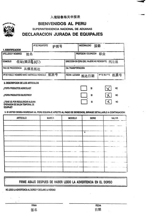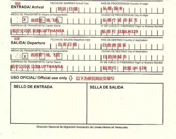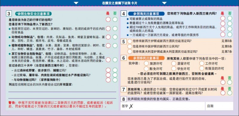 入境卡背面: