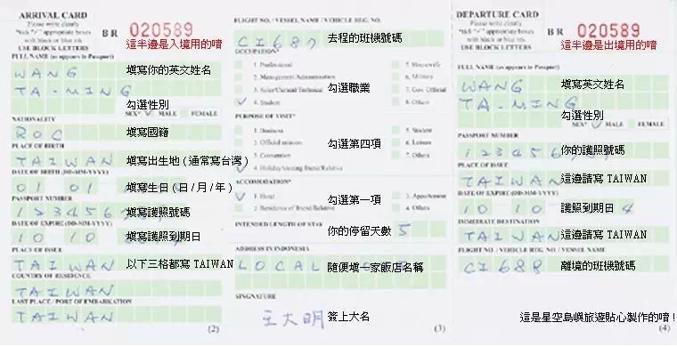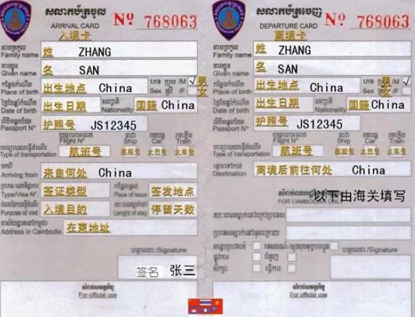 入境卡正面: